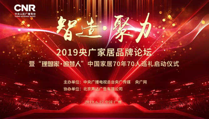 6月27日,智造•聚力——2019央廣家居品牌發(fā)展論壇暨“理想家•追夢人”中國家居70年70人巡禮啟動儀式在廣州市隆重舉行。