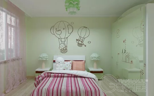 兒童房是最適合硅藻泥的地方,而它的圖案也是最漂亮的。硅藻泥主要就是環保,其次才是風格。同時兒童房,因主人的年齡差異而選用不同的色彩圖案。10歲以下孩子的很多知識都是從直觀認識得來的,所以這部分孩子的房間可以鋪一些卡通圖案的硅藻泥背景墻,這有助于刺激孩子的感知。而10歲到18歲的孩子,最討厭的就是被當作小孩子,所以裝飾不能太幼稚?;?,男孩子用冷色調,女孩子用暖色調,而在腰線裝飾一些時髦的圖案。女孩子可以放一些q版的時髦女孩圖案,男孩子則適合運動元素。