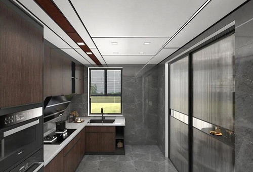 大板吊頂不僅僅是單純的將扣板的尺寸變大,還包括它的整體設計都是突破了原有小尺寸集成吊頂扣板的局限,是一種吊頂空間的全新跨越,通過與型材線梁的完美組合為消費者帶來不一樣的視覺空間體驗。